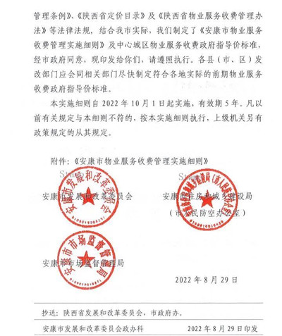 各縣(市、區(qū))發(fā)展改革局、住建局、市場(chǎng)監(jiān)督管理局,安康高新技術(shù)產(chǎn)業(yè)開發(fā)區(qū)管委會(huì)、恒口示范區(qū)(試驗(yàn)區(qū))管委會(huì)、瀛湖生態(tài)旅游區(qū)管委會(huì),各有關(guān)物業(yè)服務(wù)企業(yè):