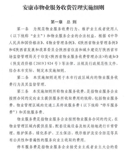 關(guān)于印發(fā)《安康市物業(yè)服務(wù)收費(fèi)管理實(shí)施細(xì)則》的通知