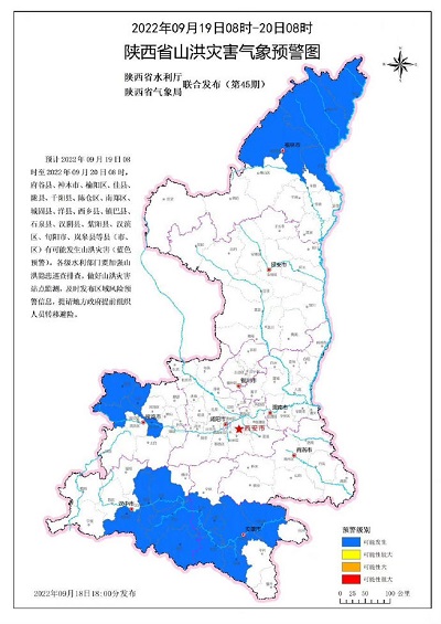 陜西省水利廳與陜西省氣象局聯(lián)合發(fā)布山洪災(zāi)害氣象預(yù)警:預(yù)計(jì)2022年09月19日08時(shí)至2022年09月20日08時(shí),府谷縣、神木市、榆陽區(qū)、佳縣、隴縣、千陽縣、陳倉區(qū)、南鄭區(qū)、城固縣、洋縣、西鄉(xiāng)縣、鎮(zhèn)巴縣、石泉縣、漢陰縣、紫陽縣、漢濱區(qū)、旬陽市、嵐皋縣等縣(市、區(qū))有可能發(fā)生山洪災(zāi)害(藍(lán)色預(yù)警)。各級(jí)水利部門要加強(qiáng)山洪隱患巡查排查,做好山洪災(zāi)害站點(diǎn)監(jiān)測(cè),及時(shí)發(fā)布區(qū)域風(fēng)險(xiǎn)預(yù)警信息,提請(qǐng)地方政府提前組織人員轉(zhuǎn)移避險(xiǎn)。