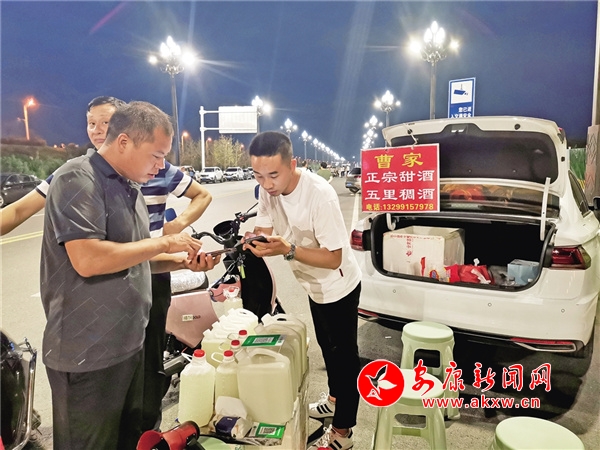 記者上前和他攀談起來,眼前這位能說會(huì)道的小伙子白天在漢濱區(qū)一家物業(yè)公司上班,下班后為了給自己再找點(diǎn)事干,他便會(huì)拉上20多桶自家做的稠酒到四橋底下售賣。兩個(gè)多月的時(shí)間,除了下雨,雷玉濤幾乎每天都來。“前期大家都不知道我在這里擺攤,我就發(fā)朋友圈和抖音,朋友們知道了又轉(zhuǎn)發(fā)傳播,后面來的顧客很多都是借助互聯(lián)網(wǎng)傳播來的新顧客。曹家稠酒在安康做了20多年,也算小有名氣,現(xiàn)在我每天帶來的稠酒基本上都能賣完,一天可以賺400多元。”