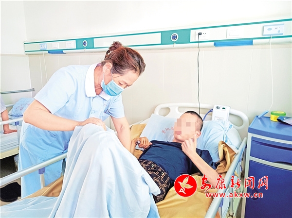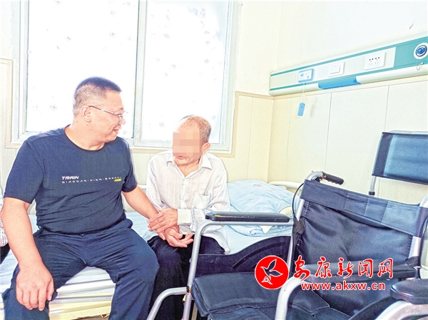 身材敦實(shí)的中年漢子魏龍江,動(dòng)作敏捷而又輕柔地?cái)D到對(duì)面去,打開老人床上那折疊成方塊的被子,又揭開床單、抽出墊褥。大家在他的展示中,看不到臟污,聞不到尿騷與臭氣。接著,他又把輪騎轉(zhuǎn)了一圈,讓我們真切地看到:老人的皮膚是健康的,衣服是干凈的,身上也沒有什么異味兒。