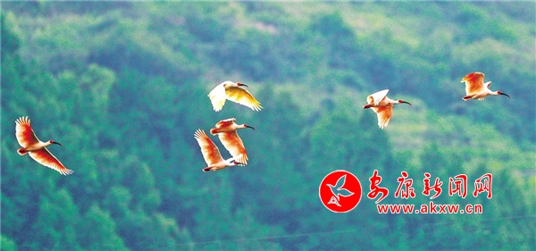 三是朱鹮已經(jīng)成為漢陰縣的“定居者”。漢陰縣生態(tài)環(huán)境優(yōu)良的一個顯著特點是河流、水庫周圍的森林覆蓋率較高,尤其是松樹林較多,這些樹種適宜朱鹮在這上面建窩繁殖。據(jù)不完全統(tǒng)計,目前漢陰縣朱鹮數(shù)量有百只以上。良好的生態(tài)環(huán)境不僅吸引了各類鳥類的到來,而且還讓朱鹮成了當(dāng)?shù)亻L期的“定居者”。