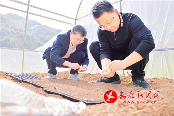 城關鎮(zhèn)竹林村駐村工作隊在“一畝實踐田”中進行育苗