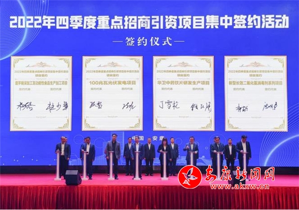 本網(wǎng)訊(記者 吳單)10月22日,安康高新區(qū)舉行2022年第四季度重點招商引資項目集中簽約活動。市長王浩,市委常委、常務(wù)副市長高晶華,市委常委、安康高新區(qū)黨工委書記羅武俠出席活動。
