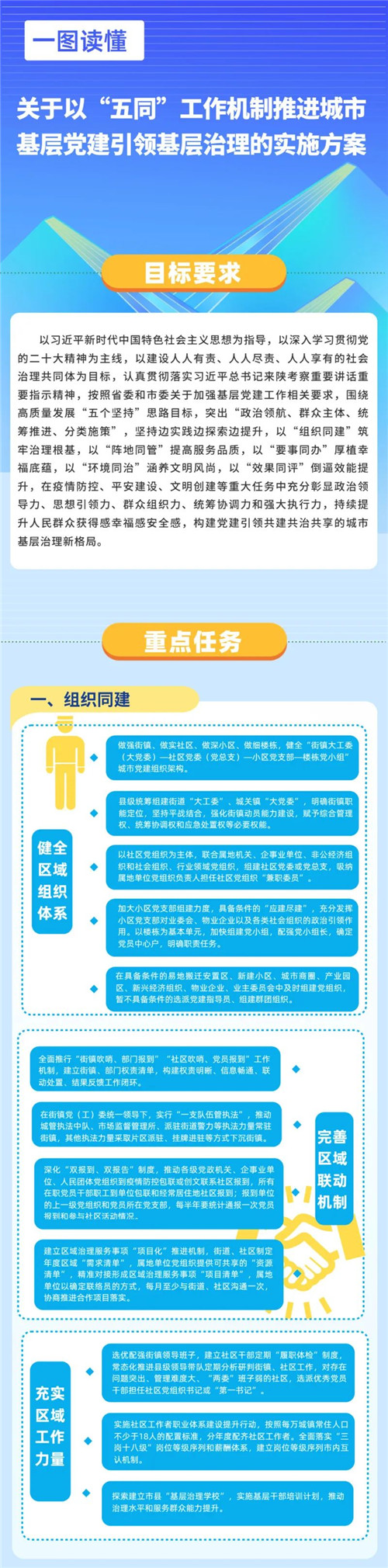 近期,市委印發(fā)《關于以“五同”工作機制推進城市基層黨建引領基層治理的實施方案》。一起了解具體內容。