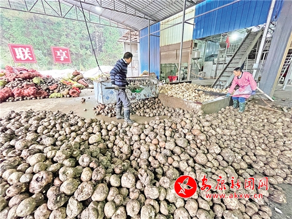 種了這么多魔芋,怎么來抵御市場風險?蔣家關(guān)村又想了一招,村魔芋專業(yè)合作社籌資140萬元,以入股形式吸納周邊的大灣村、草埡村集體股份經(jīng)濟合作社資金80萬元,加上村股份經(jīng)濟合作社130萬元的“三變”扶貧資金,建成了魔芋加工廠,采取訂單收購和保護價收購。伍先忠說,每到魔芋成熟時節(jié),加工廠工作人員就會“帶著秤桿子,開著車子,帶著票子”挨家挨戶收購。在旺季,這里每天能收購上百噸鮮魔芋,工廠每天也能加工30多噸。