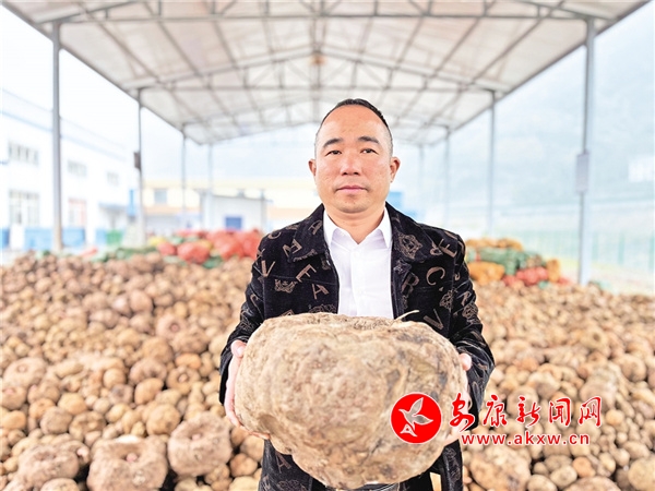 “這一個魔芋有20多斤。”聲音從背后傳來,一個不高但很結(jié)實的男人站在后面,他接著介紹,“這里只是一小部分,等天氣好點,還會有更多的魔芋被送進來。”