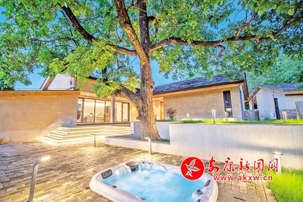 花婆婆民宿有6座院落、1棟云上會(huì)客廳,建筑面積1800多平方米。行走在民宿度假區(qū),花、草、樹、石、步道、房屋錯(cuò)落相應(yīng),虛實(shí)相生。一棵冠如巨傘的核桃樹兀立于小院中,樹齡至少百年以上,主干黝黑皴裂,枝丫遒勁繁密。“原來的院子和樹也是這樣共生的。”往年茶季,老房主周顯勤一家經(jīng)常在核桃樹下手工揉茶、攤開簸箕曬茶。他說,雖然現(xiàn)在已經(jīng)有了一家標(biāo)準(zhǔn)化茶廠,但是依然懷念在老屋制茶的日子。這些帶著時(shí)光印痕的物景和故事,最能引起人們對鄉(xiāng)村記憶的共鳴,實(shí)現(xiàn)對心靈的療愈;ㄆ牌琶袼藿ㄔ熘凶駨牧诉@一規(guī)律,始終堅(jiān)持盡最大可能地保留原始風(fēng)貌,哪怕是一塊凸起的石頭和貼在巖壁上的青苔,也小心地呵護(hù)著。
