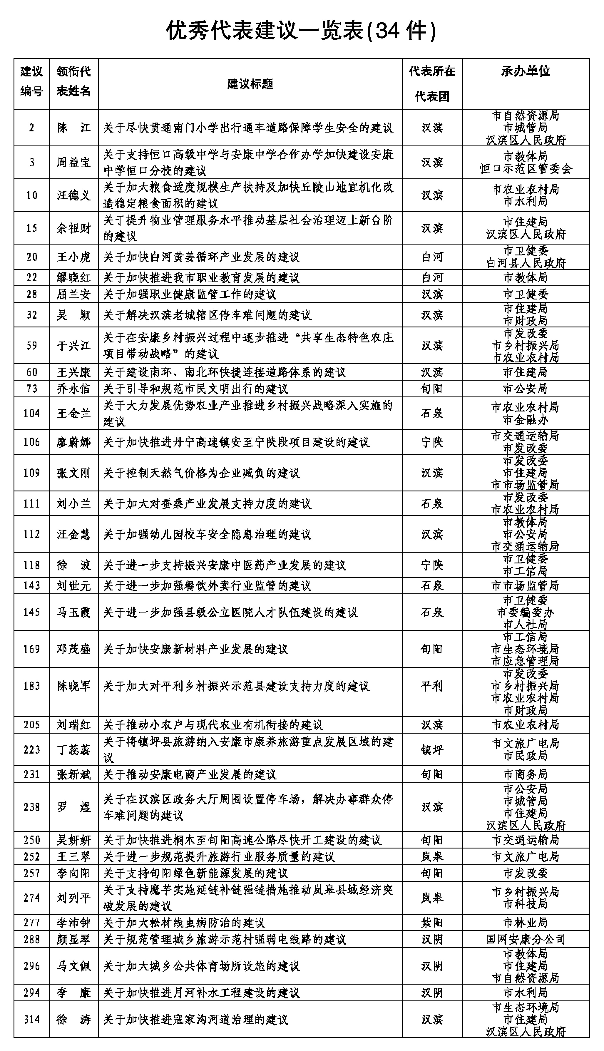 市人大代表向市級國家機(jī)關(guān)提出建議、批評和意見,是憲法和法律賦予的民主權(quán)利,是代表人民直接參與管理國家和社會事務(wù)的有效形式。市五屆人大一次會議以來,全體市人大代表深入學(xué)習(xí)貫徹習(xí)近平新時代中國特色社會主義思想和黨的二十大及中央人大工作會議精神,緊緊圍繞全市中心工作和人民群眾普遍關(guān)心關(guān)注的熱點(diǎn)難點(diǎn)問題,依法履行職責(zé),積極建言獻(xiàn)策,共提出了321件代表建議,為推進(jìn)安康經(jīng)濟(jì)社會發(fā)展和民主法治建設(shè)凝聚了智慧、增進(jìn)了共識、貢獻(xiàn)了力量。為樹立典型、推進(jìn)工作,市人大常委會決定,對陳江等代表提出的34件優(yōu)秀代表建議予以通報表揚(yáng)。
