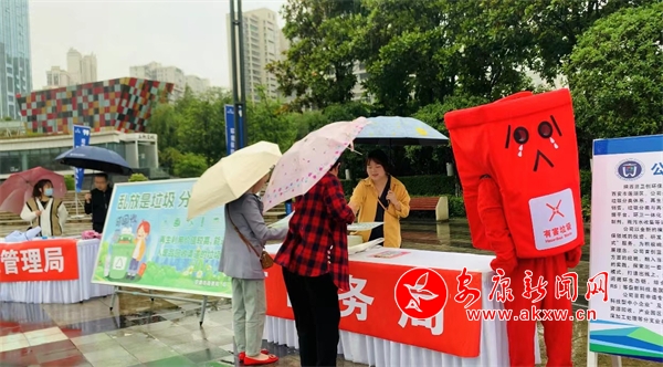 活動當日陰雨綿綿,北辰公園人頭攢動。在一排排豐富多彩的宣傳展板和生活垃圾分類成果展區(qū)前,不少市民駐足觀看和詢問有關情況,工作人員耐心解答并熱情洋溢地宣傳普及生活垃圾分類知識;顒蝇F(xiàn)場還設置有妙趣橫生的環(huán)保游戲,身著環(huán)保標識的“人形玩偶”頻頻與大家互動,在輕松歡樂的氛圍中傳遞環(huán)保理念。