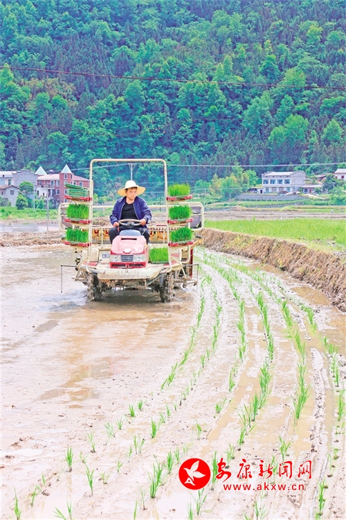 取而代之的是,轟鳴聲中插秧機(jī)在稻田里來(lái)回穿梭,一株株嫩綠的秧苗在插秧機(jī)苗盤(pán)上滑落,整齊有序地插入田地里,沒(méi)過(guò)多久,插秧機(jī)所過(guò)之處,便留下一排排整齊的綠油油秧苗。