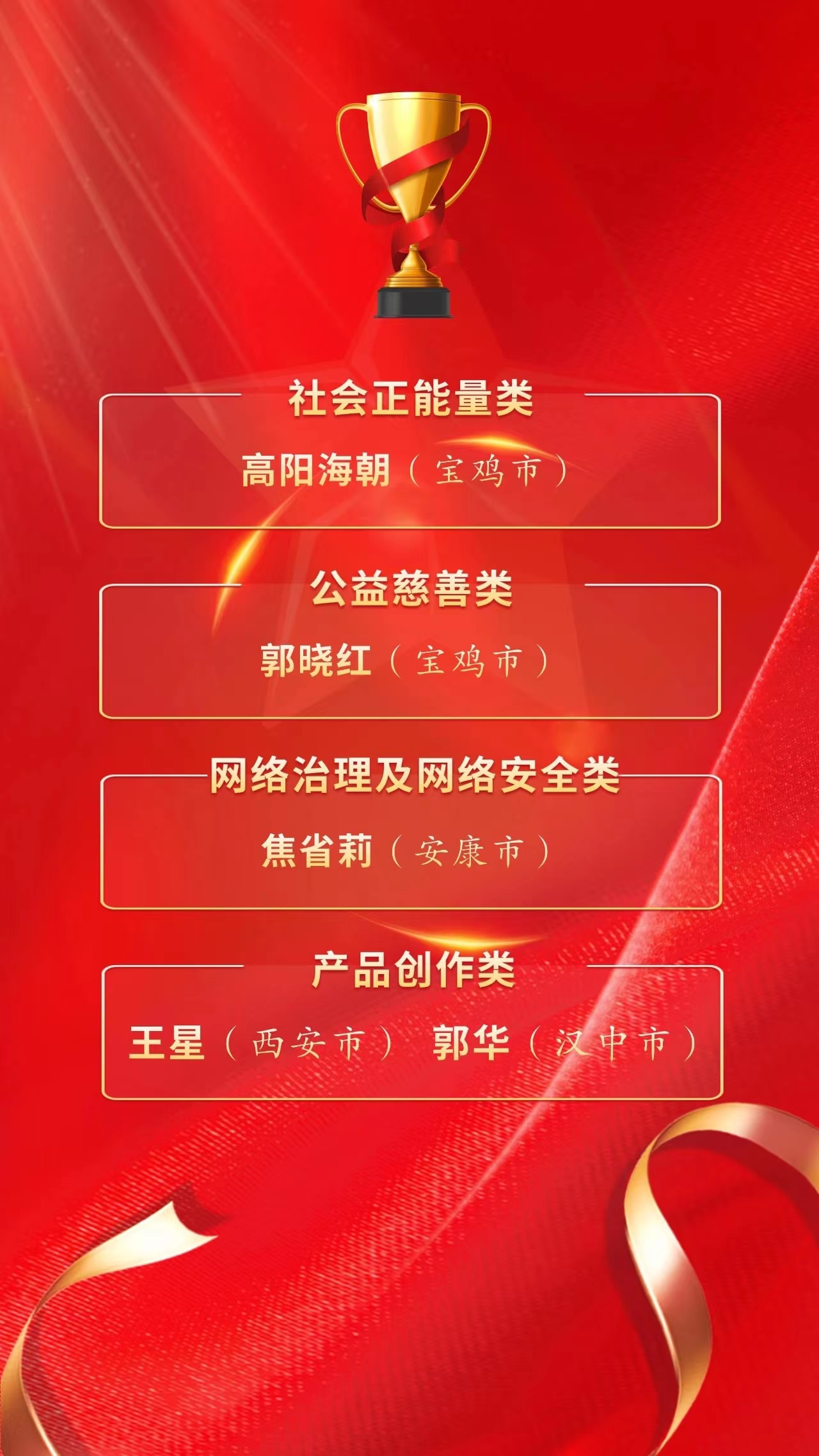 2022年5月以來,全國(guó)婦聯(lián)宣傳部、中央網(wǎng)信辦網(wǎng)絡(luò)社會(huì)工作局組織開展了第三屆“百個(gè)巾幗好網(wǎng)民故事”暨“十大爭(zhēng)做巾幗好網(wǎng)民優(yōu)秀案例”征集推選活動(dòng),在網(wǎng)絡(luò)空間大力唱響主旋律、傳播正能量,吸引數(shù)千萬網(wǎng)友傾情點(diǎn)贊。6月6日,在2023年度“爭(zhēng)做巾幗好網(wǎng)民”主題活動(dòng)啟動(dòng)儀式上,推選結(jié)果正式發(fā)布。推選結(jié)果詳情已在中國(guó)婦女網(wǎng)、新華網(wǎng)、網(wǎng)易新聞專題呈現(xiàn)。其中,我市焦省莉入選全國(guó)“百個(gè)巾幗好網(wǎng)民故事”。
