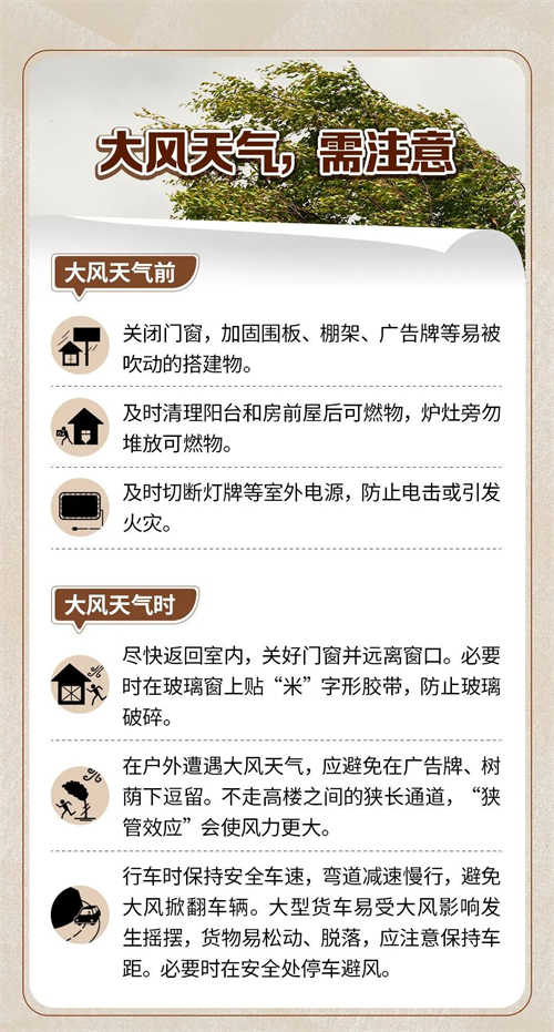 請相關部門提前做好短時暴雨、雷暴大風和冰雹等強對流天氣的防御工作;公眾在發(fā)生雷雨大風時減少戶外活動,遠離棚架廣告牌等搭建物;注意短時暴雨引發(fā)的山洪、滑坡、泥石流等災害。
