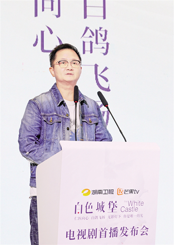 導(dǎo)演楊文軍在《白色城堡》首播發(fā)布會(huì)上發(fā)言