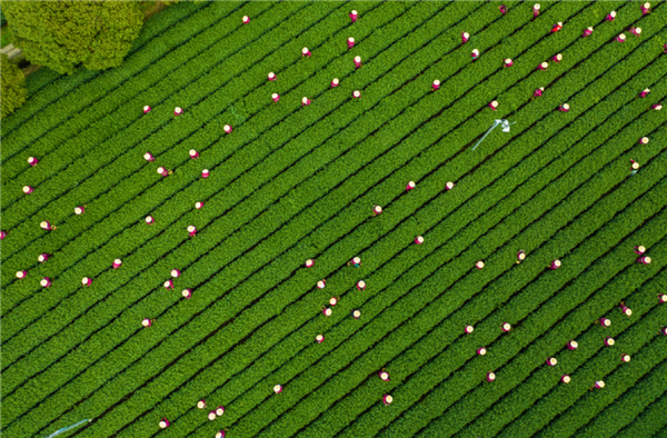 圖片杭州郊外梅家塢,茶農(nóng)在清明節(jié)前集中采集明前龍井。圖/視覺中國