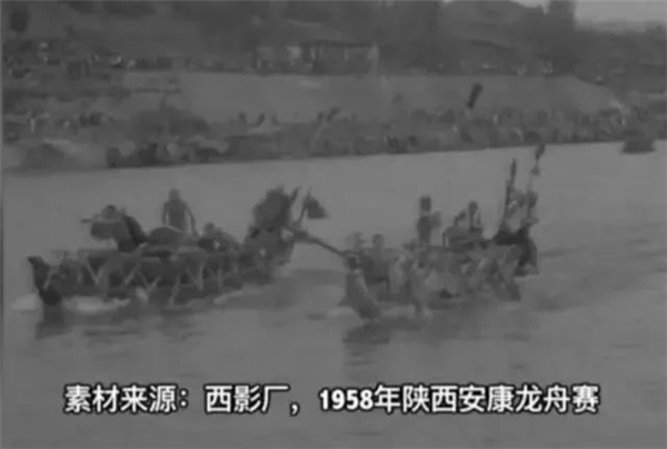 新中國成立后,安康龍舟競(jìng)渡的名氣依然在線,西安電影制片廠建廠后拍攝的第一部電影《慶豐收賽龍舟》,“主角”就是安康賽龍舟,電影用紀(jì)實(shí)的手法,記錄了1958 年端陽節(jié)安康城區(qū)舉辦龍舟賽的盛況,后來全國發(fā)行。