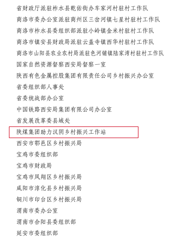 陜西省定點(diǎn)幫扶工作先進(jìn)集體名單