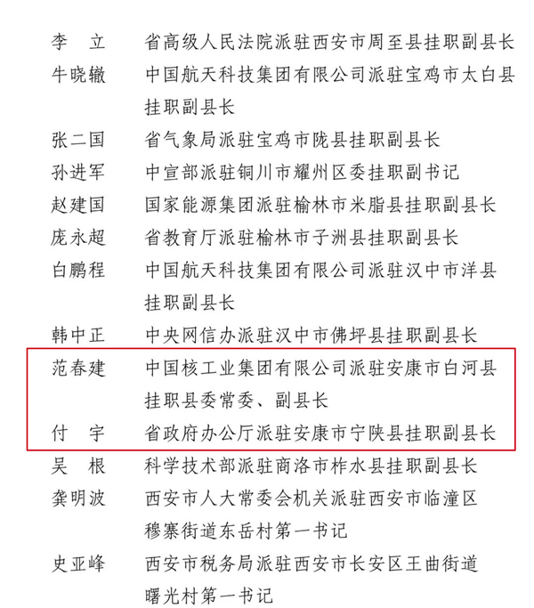 陜西省定點(diǎn)幫扶工作先進(jìn)個(gè)人名單