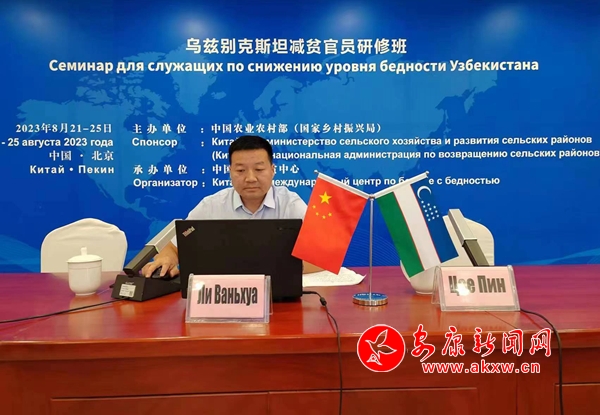 烏茲別克斯坦是上海合作組織框架內(nèi)的重要國家,是中國的友好鄰邦和全面戰(zhàn)略合作伙伴。為積極落實中烏兩國元首指示精神,中國農(nóng)業(yè)農(nóng)村部(國家鄉(xiāng)村振興局)高度重視中烏減貧交流中的能力建設(shè),本次研修班參訓(xùn)學(xué)員多達9500余人,在中國歷年的國際減貧培訓(xùn)中前所未有。安康《小玩具做出大文章——安康市大力發(fā)展毛絨玩具產(chǎn)業(yè)幫助群眾實現(xiàn)就業(yè)增收》案例,經(jīng)省、市鄉(xiāng)村振興局推薦,作為陜西省唯一減貧案例,于8月24日下午,由安康市人社局副局長李萬華,向烏茲別克斯坦基層一線減貧官員在線進行經(jīng)驗講述。