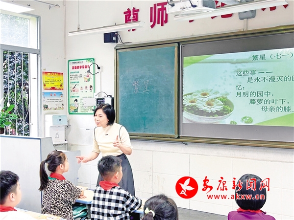 急功近利的教育不是成功的教育,進步的過程是一點一滴的積累。呂國文在班級的文化墻上創(chuàng)辦了《芳草地》欄目,為孩子們提供了一個文字交流的平臺,再后來,學校創(chuàng)辦了?对潞罚⒆觽冇辛烁蟮恼故酒脚_。她發(fā)起開辦“紅領巾電臺”,組織開展經(jīng)典誦讀、班干部競選演講、辯論賽、給爸爸媽媽的一封信等活動,提高學生的表達能力。為了讓學生愛上古詩文,她探索將把古詩、音樂、徒手操結(jié)合在一起,傳承文化的同時強身健體;把《三字經(jīng)》編成歌曲,用舞蹈的形式呈現(xiàn);把《論語》的經(jīng)典名句選編出來進行故事演繹;把《將相和》改成劇本讓學生分角色扮演。