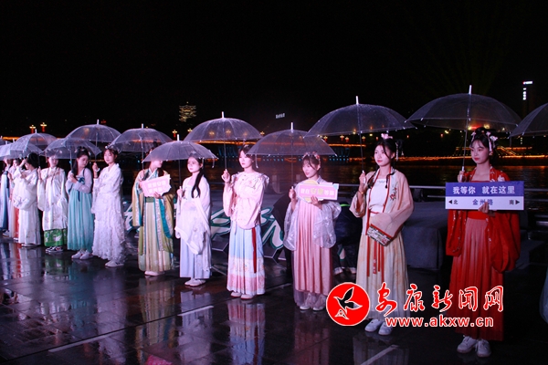 開場歌舞《安安康康送吉祥》將活動氣氛點燃,活動發(fā)布,漢江夜游將實現(xiàn)以西城坊街區(qū)為起點,串聯(lián)西城閣、漢江大劇院、漢江四橋、移民博物館、安瀾樓、龍舟文化園、安康博物館、漢江一橋等核心地標(biāo),項目體驗時長約40分鐘、全線5公里。為配合夜游項目,策劃了美食、演藝、文創(chuàng)市集、茶藝體驗、網(wǎng)紅直播打卡、水上運動等6大板塊,同時,設(shè)置了漢服體驗、毛絨玩具娃娃機等項目,為廣大游客打造沉浸式游玩新感受。