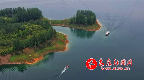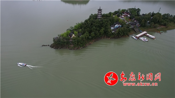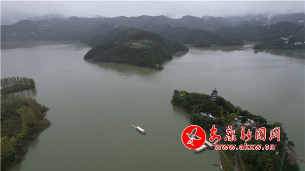 登上游船,憑窗站艙或斜倚欄桿,迎著細細春雨,向翠屏島駛去。湖面水波不興,船像在玻璃上滑行。粼粼水波,像安康絲綢上的細紋,光滑嫩綠。站在船頭,如駛進大海,喜不自勝。雨,像斷了線的珍珠,拋撒在溫柔恬雅的湖面上,點點閃閃,晶瑩明亮。湖上的點水雀不經意間從船舷擦水而過,驀然回首,不覺驚異和高興。綿鱗遽然躍水的瞬間,叫人看到飛花點翠的一閃,游子橫波一笑。舷側的浪花低吟慢唱,猶帶一些委婉悠揚,頗似顫響在絲竹與板胡上的安康漢調二黃。船員介紹了翠屏島是因島上的草木蒼翠茂盛,五彩繽紛,從空中俯瞰活像孔雀開屏,故取此名。