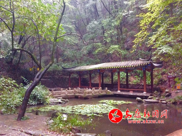 我沿著階梯,踏進二天門旁邊的亭子里,倚在柱子上,聽一場秋雨:亭子下的秋霧濃一陣子,淡一陣子。濃時,漫過亭子,我也在云里,駕著亭子,云里飛度;淡時,露出路下樹尖,淺黃的葉子掛滿珍珠,一粒一粒的雨珠,從亭子的飛檐上落下,打在藤蔓上,敲打出“叮叮咚咚”的聲音,遠處的細雨落在秋葉上,落出“沙沙沙”的聲音,林子里秋鳥的叫聲,和弦在一起,成為秋歌,這美妙的秋歌,在秋霧里蕩漾、蔓延、飄落。我靜靜地聆聽,我悠哉悠哉地享受,享受這淺秋賜給大地的音樂,聽著聽著,路邊柱子上的喇叭里舒伯特的《小夜曲》漫過來,我閉上眼睛,夜就漫過來,這美麗的《小夜曲》蕩滌著我的靈魂,柔軟的《小夜曲》讓我的淚水溢了出來,這時候《美麗的磨坊少女》走出來,淡淡的憂傷也流了出來。我拍拍腦門,醒了過來,此時,懸掛在路燈上的音箱里,又飛來劉德華的《秋意中等我》的歌聲,在秋雨里扭來扭去。