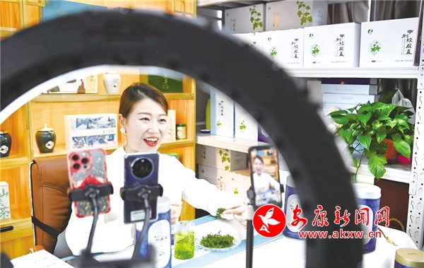 “平利漫山遍野都有絞股藍(lán),絞股藍(lán)有‘東方神草’之稱,含有豐富的皂苷、黃酮、多糖類化合物,富有鋅、硒等多種微量元素,對(duì)人體有諸多好處。”11月5日,在第六屆中國(guó)進(jìn)出口博覽會(huì)陜西館,平利縣富硒堂茶業(yè)有限公司負(fù)責(zé)人王秀梅向客商推薦介紹平利絞股藍(lán)。與此同時(shí),在位于平利縣數(shù)字經(jīng)濟(jì)產(chǎn)業(yè)園里的公司直播間,員工成云正在進(jìn)行著絞股藍(lán)產(chǎn)品的直播售賣。