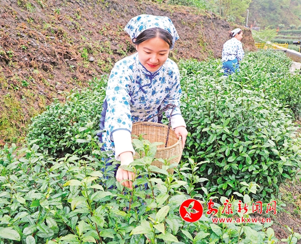 佐龍鎮(zhèn)亂石溝村茶農(nóng)正在采摘春茶。