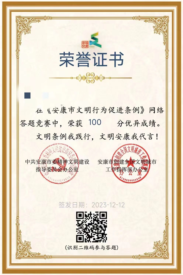 據(jù)了解,市委文明辦、市創(chuàng)文辦已經(jīng)在全市下發(fā)《關(guān)于學(xué)習(xí)宣傳貫徹〈安康市文明行為促進(jìn)條例〉的通知》和《關(guān)于開展〈安康市文明行為促進(jìn)條例〉網(wǎng)絡(luò)答題競賽活動的通知》,本次活動旨在通過網(wǎng)絡(luò)答題的形式,深入學(xué)習(xí)宣傳貫徹《安康市文明行為促進(jìn)條例》,提高廣大干部職工和市民群眾的文明素養(yǎng)。