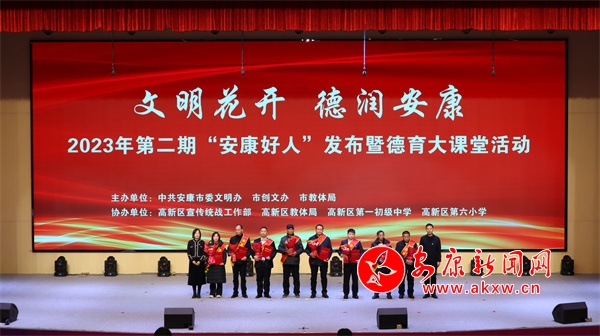 本次活動(dòng)以“文明花開 德潤(rùn)安康”為主題,共有33人(組)“安康好人”上榜;顒(dòng)共分為助人為樂、見義勇為、誠(chéng)實(shí)守信、孝老愛親、敬業(yè)奉獻(xiàn)五個(gè)篇章,通過事跡短片展播、現(xiàn)場(chǎng)訪談、宣讀致敬詞、表演文藝節(jié)目等方式,生動(dòng)展現(xiàn)了“安康好人”的感人故事和善行義舉,深刻詮釋了中華民族的道德內(nèi)涵和精神傳承,為現(xiàn)場(chǎng)學(xué)生帶來了一場(chǎng)生動(dòng)形象的德育大課堂,F(xiàn)場(chǎng)還向“安康好人”贈(zèng)送了道德禮遇大禮包。