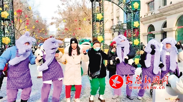 他們先后來到哈爾濱紅磚早市、中央大街、冰雪大世界等景點,可愛的“魔芋寶寶”瞬間晉升為哈爾濱的新“網(wǎng)紅”,引起了廣大游客的喜愛,迅速在抖音、視頻號上形成話題,最高播放量達97.7萬次。