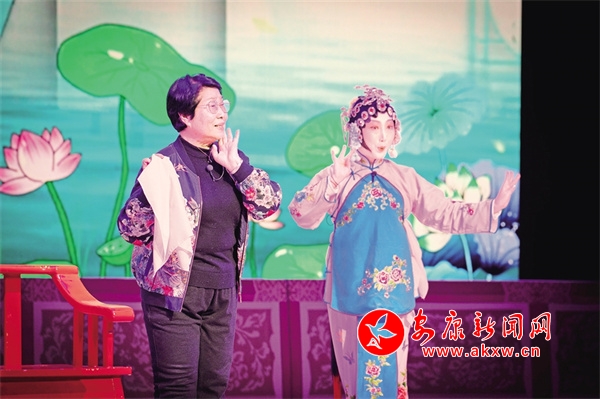 國家級傳承人王發(fā)蕓(左)老師指導(dǎo)學(xué)生演出