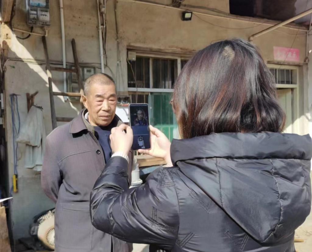 五愛(ài)村干部上門(mén)為高齡老人做生存認(rèn)證。新華社記者 李亞楠攝