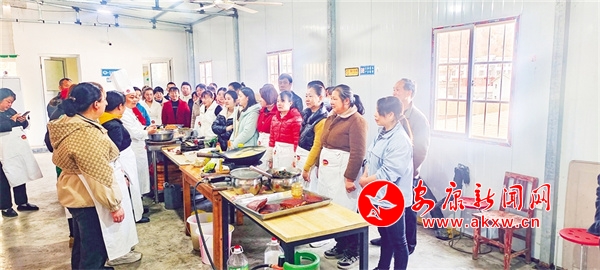 在培訓(xùn)學(xué)校,專業(yè)老師指導(dǎo)學(xué)員烹飪本地美食