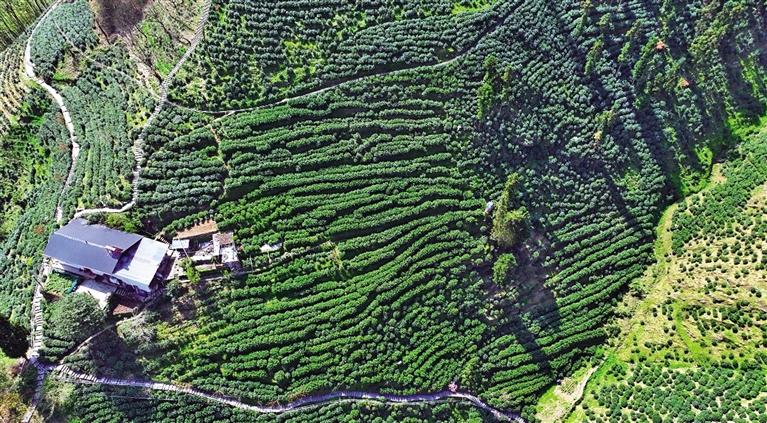 3月27日航拍的安康市紫陽縣煥古鎮(zhèn)茶園。 陜西日報記者 田若楠攝