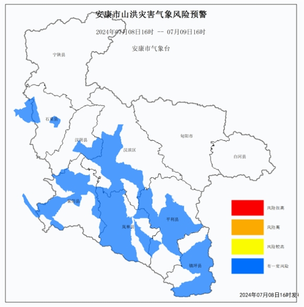 本網(wǎng)訊 7月8日16時,安康市水利局、市氣象局聯(lián)合發(fā)布山洪災(zāi)害氣象風(fēng)險預(yù)警:預(yù)計,7月8日16時至7月9日16時,漢濱區(qū)中部、漢陰縣東部、石泉縣中部、紫陽縣、嵐皋縣、平利縣中部、鎮(zhèn)坪縣中南部有可能發(fā)生山洪災(zāi)害(藍色預(yù)警)。
