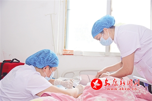 十幾分鐘后,白河縣人民醫(yī)院PICC專科護(hù)士袁茜和杜曉雨帶著醫(yī)藥箱趕到城關(guān)鎮(zhèn)廣興金座8號(hào)樓3層樊阿姨家里。2kd安康新聞網(wǎng)