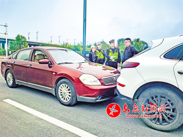 交警在東壩內(nèi)環(huán)東路快速處理交通事故。 唐正飛 攝(市道路交通事故快速處理服務(wù)中心供圖)記者 唐正飛 實(shí)習(xí)生 曹藝瑤“你會(huì)不會(huì)開(kāi)車(chē),這么寬的路你不走,非要朝我……