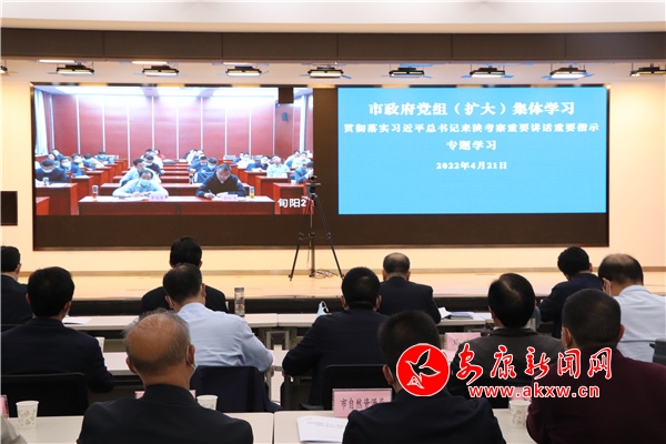 本網(wǎng)訊(通訊員 安政軒)習(xí)近平總書(shū)記親臨安康考察調(diào)研兩周年之際,市政府黨組4月21日晚專(zhuān)門(mén)組織開(kāi)展貫徹落實(shí)習(xí)近平總書(shū)記來(lái)陜考察重要講話(huà)重要指示集體學(xué)習(xí)。市……