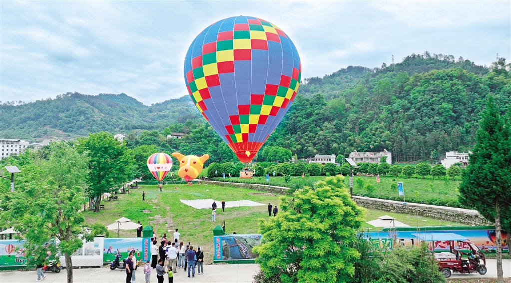 “五一”小長假期間,平利縣策劃了系列文旅活動,吸引游客觀光游玩。圖為5月2日,游客在平利縣城關(guān)鎮(zhèn)龍頭村熱氣球基地體驗熱氣球。沈奕君 攝“五一”小長假期間,……