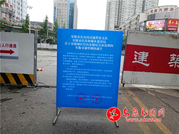 安康新聞網(wǎng)訊(記者 牟慶紅)7月10日上午,記者來到中心城區(qū)巴山東路,發(fā)現(xiàn)此時文昌路口至黨校路天橋路段正在進行封閉施工。巴山東路由東往西方向車輛只能行至東堤十字東口,圍擋附近留有開口可供車輛掉頭。文昌北路東半幅全封閉,西半幅可正常通行。