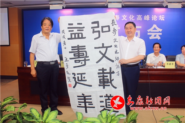 中國民協(xié)副主席、陜西省民協(xié)主席王勇超代表中國民協(xié)給鎮(zhèn)坪縣贈送書法