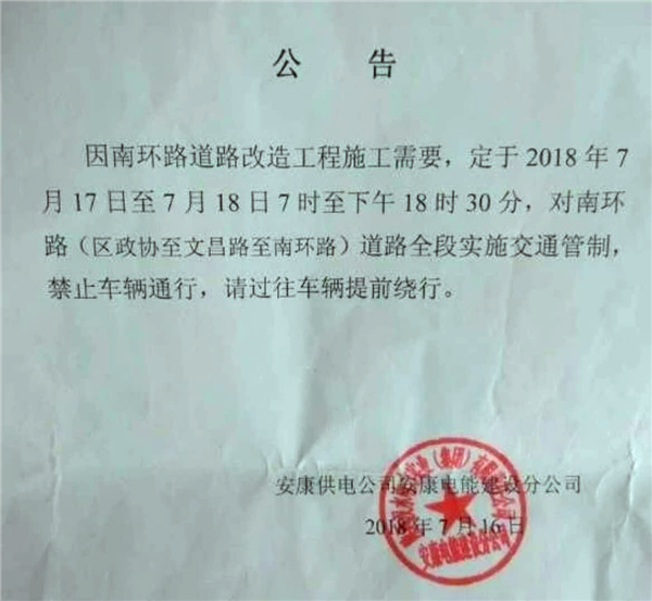安康新聞網(wǎng)訊(記者 牟慶紅)因南環(huán)路改造工程施工需要,施工方定于7月17日、18日早上7時至下午18時30分,對南環(huán)路(香溪路至文昌路段)道路兩側(cè)架空電力線路,進(jìn)行導(dǎo)線拆除和拔除電桿工作。NsD安康新聞網(wǎng)