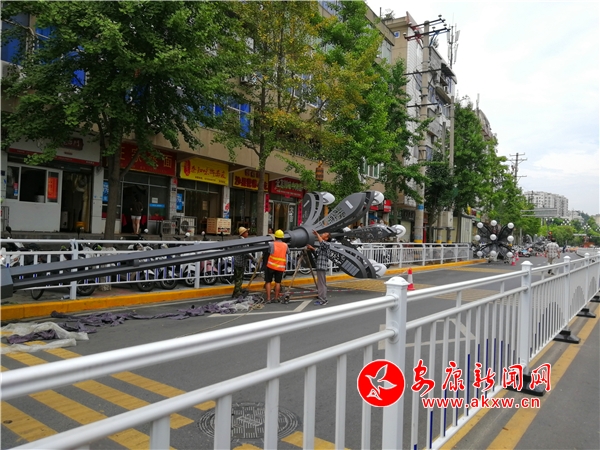 施工方周栓緊介紹,南環(huán)路從西向東進(jìn)行強(qiáng)電入地,舊電線拔除,玉蘭燈安裝。工期如期進(jìn)行,預(yù)計明日下午六時完工。NsD安康新聞網(wǎng)