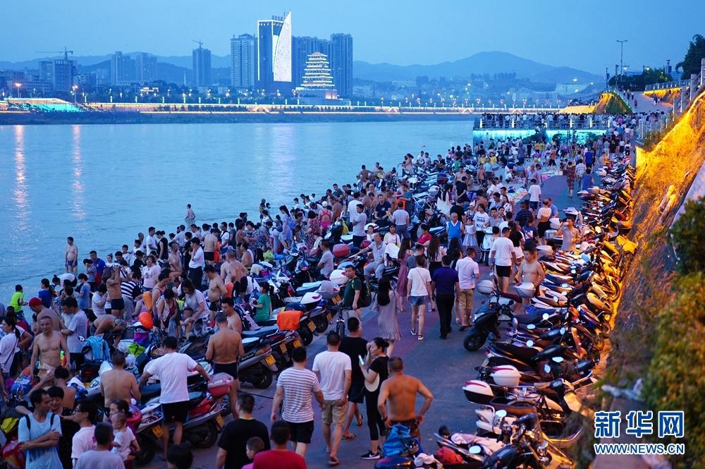 炎炎夏日傍晚時分,陜西省安康市的市民紛紛來到城區(qū)漢江江畔避暑消夏,運(yùn)動休閑,自成一景。新華社記者 邵瑞 攝