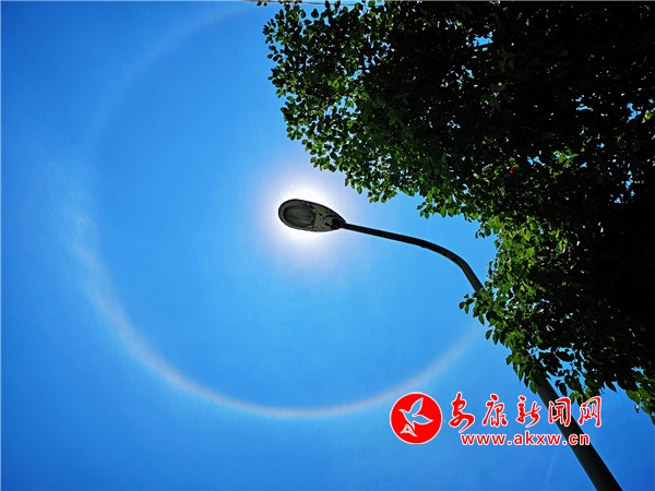 安康新聞網(wǎng)訊(記者 潘潤生)8月18日中午12時(shí)左右,安康市區(qū)上空出現(xiàn)罕見的日暈奇觀,一個(gè)巨大而耀眼的光環(huán)圍繞在太陽周圍,整個(gè)過程持續(xù)約3小時(shí)。