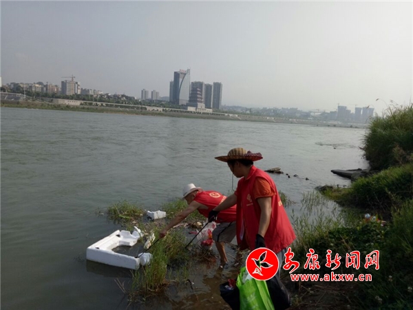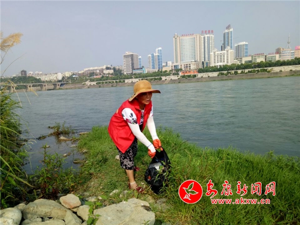 安康新聞網(wǎng)訊(實(shí)習(xí)記者 唐正飛 通訊員 王宗梅 林超 )8月17日天蒙蒙亮,漢江河岸旁除了零零星星的一些晨練市民,在水岸草叢處,身著紅色志愿服裝的海燕和她的隊(duì)友們在清澈的河水映襯下,格外顯眼。每天從早上6點(diǎn)起,大北社區(qū)居民海燕和她的隊(duì)員們就開始了一天的河岸垃圾打撈護(hù)河工作,從水西門到暴家巷河段,海燕和她的隊(duì)友們一趟走下來要花近1個(gè)小時(shí),盡管是“三伏”天,海燕和她的隊(duì)員每天都要走一趟。