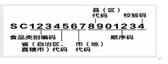 數(shù)字從左至右依次為: 3位食品類別編碼、2位。ㄗ灾螀^(qū)、直轄市)代碼、2位市(地)代碼、2位縣(區(qū))代碼、4位順序碼、1位校驗碼。