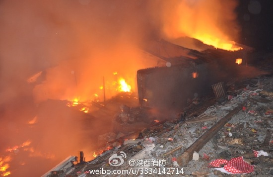 旬陽漢江煙花廠今晨4點發(fā)生爆炸起火。(圖片來源:陜西省公安消防總隊)截止早上9點25分,大火被撲滅西部網訊 記者今天(1月21日)從陜西省公安消防總隊了解到,……